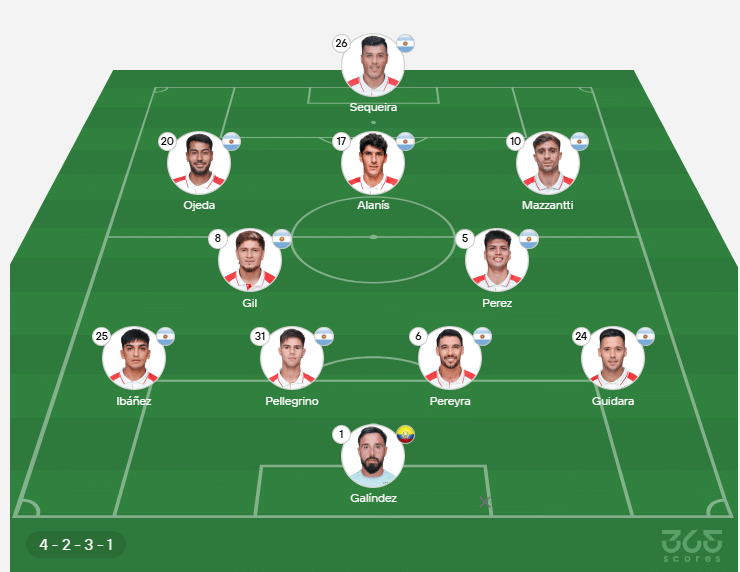- Volantes: Gil, Pérez, Ojeda, Alanís, Mazzantini