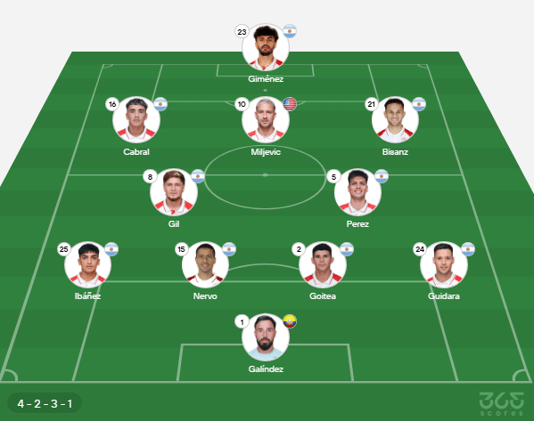 Jugadores no disponibles: Fabio Pereyra, Nehuen Mario Paz, Leonardo Sequeira, Lucas Carrizo, Daniel Zabala.