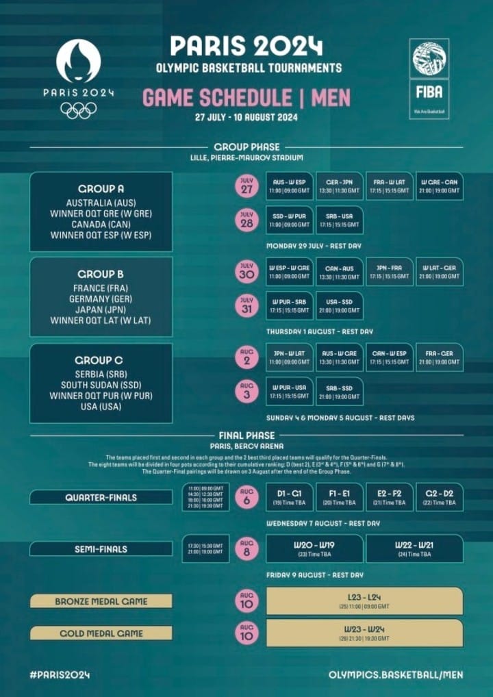 ¿Cómo es el calendario de básquet para los Juegos Olímpicos 2024?