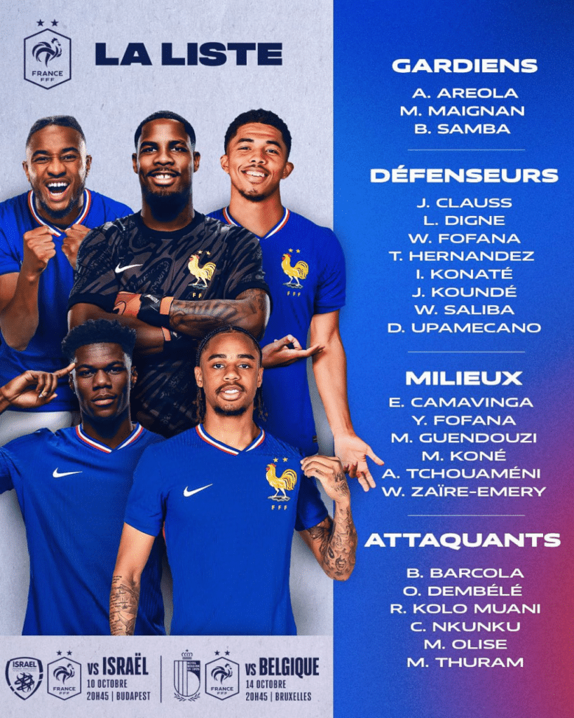 La lista de convocados de la Selección de Francia: