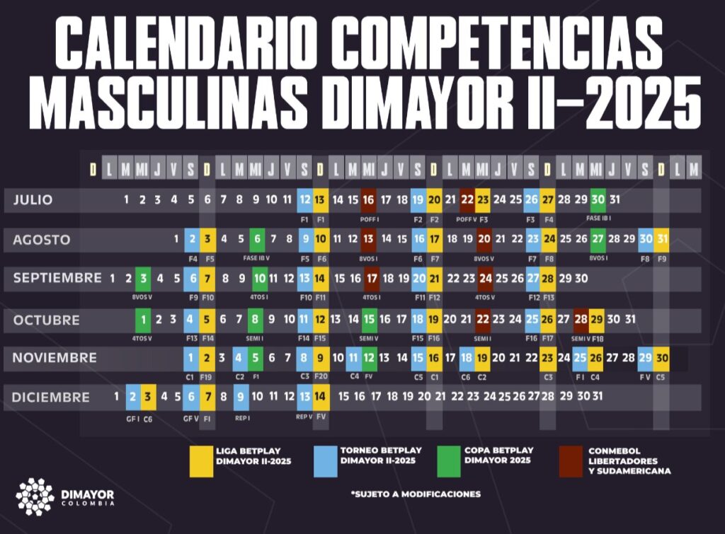 La Dimayor estableció que la Liga BetPlay 2025 II utilizará el mismo sistema del primer semestre: serán 20 fechas, con la fecha de clásicos, en primera fase con 20 equipos y Cuadrangulares semifinales con los ocho mejores para luego definir a los finalistas.