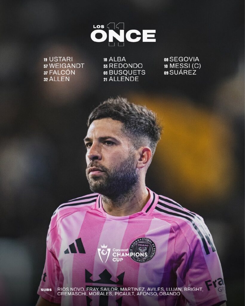 La alineación de INTER MIAMI vs Vancouver: Ustari; Weigandt, Falcón, Allén, Alba; Redondo, Busquets, Allende, Segovia; Messi y Suárez.