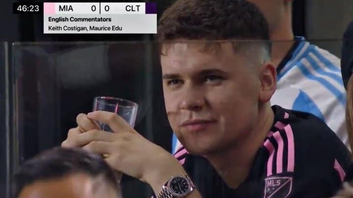 En uno de los tantos planos que realizó la transmisión de los hinchas, la TV logró identificar al icónico Bizarrap con la camiseta del Inter Miami que le obsequió el propio Lionel Messi, sin su clásico gorro y sus lentes, elementos que son una marca registrada en el artista.