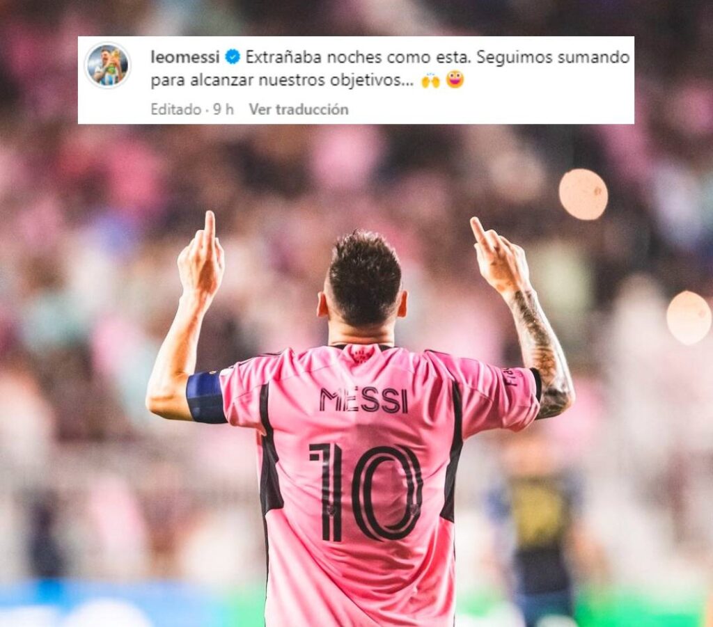 “Extrañaba noches como esta. Seguimos sumando para alcanzar nuestros objetivos”, publicó Lionel Messi luego del triunfo. Algo más aliviado por haber terminado el partido al cien desde lo físico y al mil desde lo emotivo. Con dos goles y una asistencia que sirven para la confianza y para seguir avanzando hacia su próximo objetivo: ganar su primer título de liga en la MLS. La Cabra está de regreso.