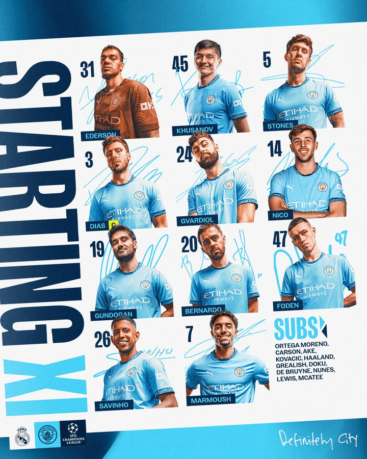 - Delanteros: Savio, Phil Foden, Omar Marmoush.
