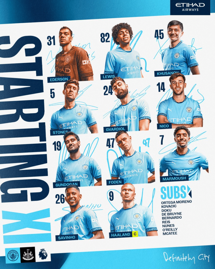 Alineación Confirmada del Manchester City vs Newcastle por la Premier Leauge