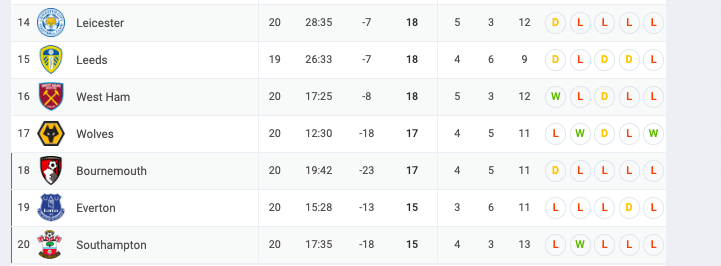 Everton se encuentra anteúltimo en la Premier con 15 puntos (solo supera al Southampton por diferencia de gol) y se encuentra en la zona de descenso. El próximo fin de semana juega contra el Arsenal, que es el líder del campeonato y el panorama es complicado.