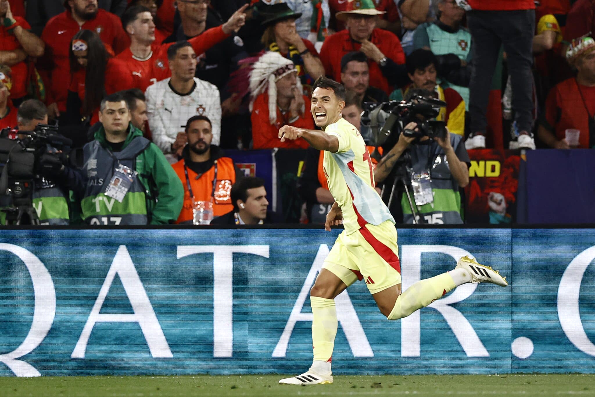 GOL DE ESPAÑA: Zubimendi marcó el 1-0 ante Portugal en la final.