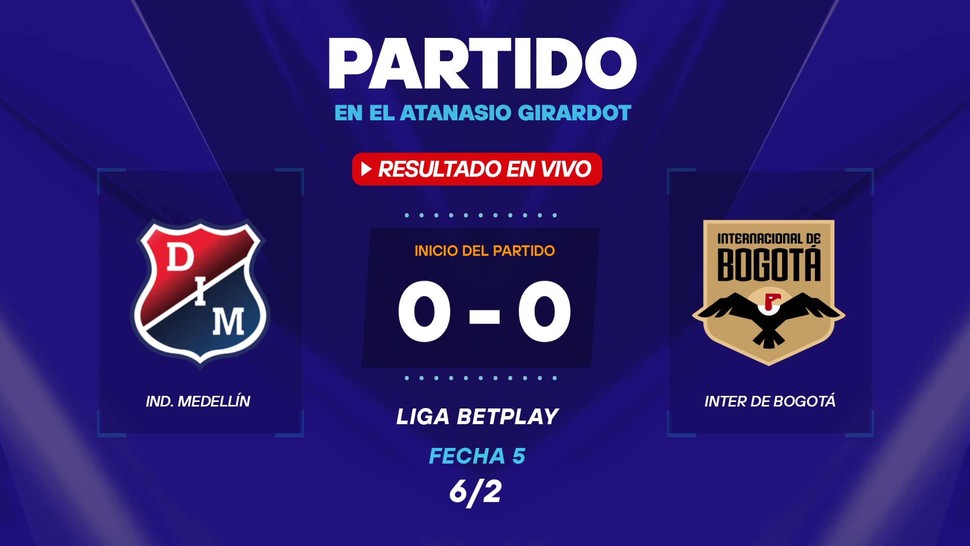 El encuentro se disputa en un contexto de alta presión para el equipo local, que solo ha sumado dos unidades en lo que va del torneo. Por su parte, Internacional de Bogotá, que viene de un empate sin goles ante Tolima, buscará aprovechar la ansiedad del rival para proponer un juego inteligente de contragolpe, en un duelo que promete emociones desde el pitazo inicial en la capital antioqueña.