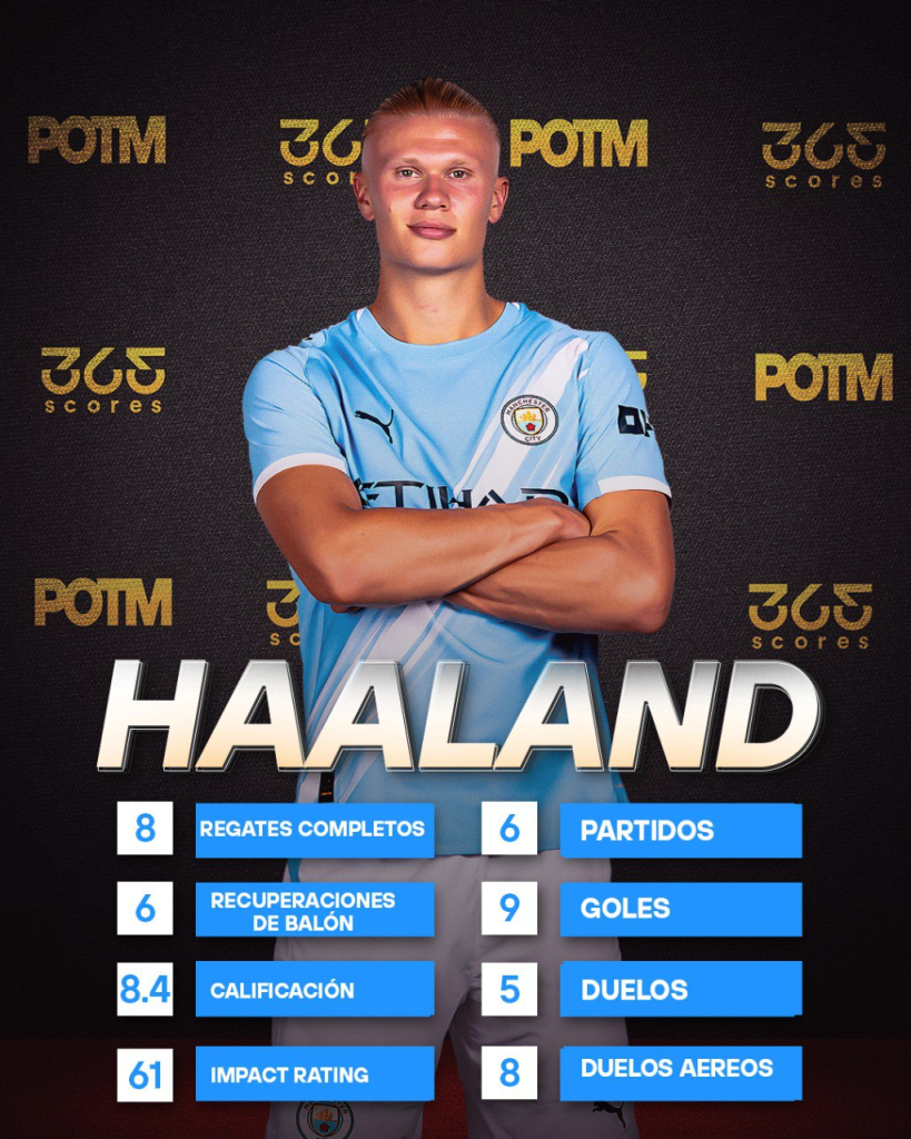 El noruego volvió a demostrar por qué es uno de los delanteros más temidos del mundo. Con nueve goles en seis partidos, fue el máximo goleador de octubre entre las cinco grandes ligas.