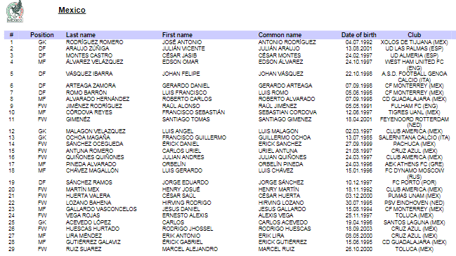 Repasamos los 60 jugadores que forman parte de la lista preliminar de México en la Nations League.