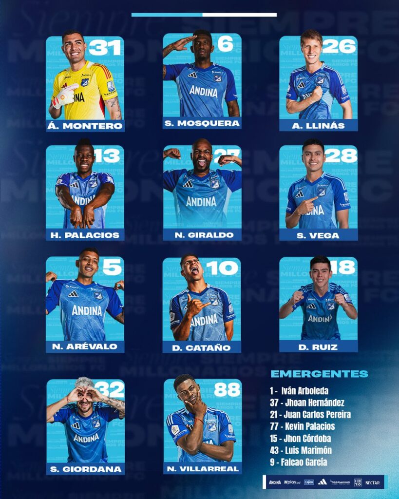 Millonarios hoy: alineación confirmada vs Envigado por la Liga BetPlay