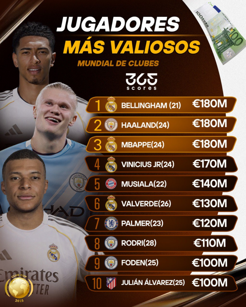 El Mundial de Clubes 2025 no solo promete ser un espectáculo por su nuevo formato y cantidad de equipos, sino también por la presencia de varias de las mayores estrellas del fútbol mundial. Entre los 32 equipos participantes, destacan figuras con valor de mercado altísimo, lideradas por Real Madrid y Manchester City. Quién será campeón?
