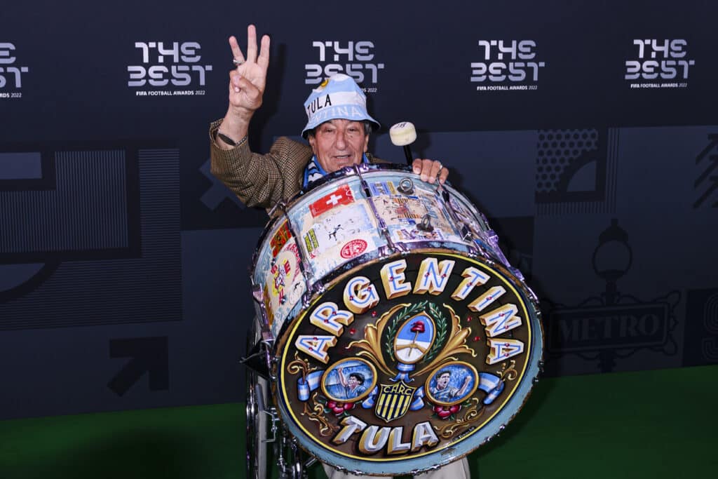 Carlos “Tula” Pascual recibió, a fines de 2023, la distinción de los premios “The Best” que entrega la FIFA. En este caso, como representante de los hinchas argentinos y por ser un personaje bastante particular: con su bombo acompañó a todos lados a la Selección Argentina y no se perdió ni una sola Copa del Mundo desde la edición 1974 hasta Qatar 2022, donde celebró la tercera conquista albiceleste.