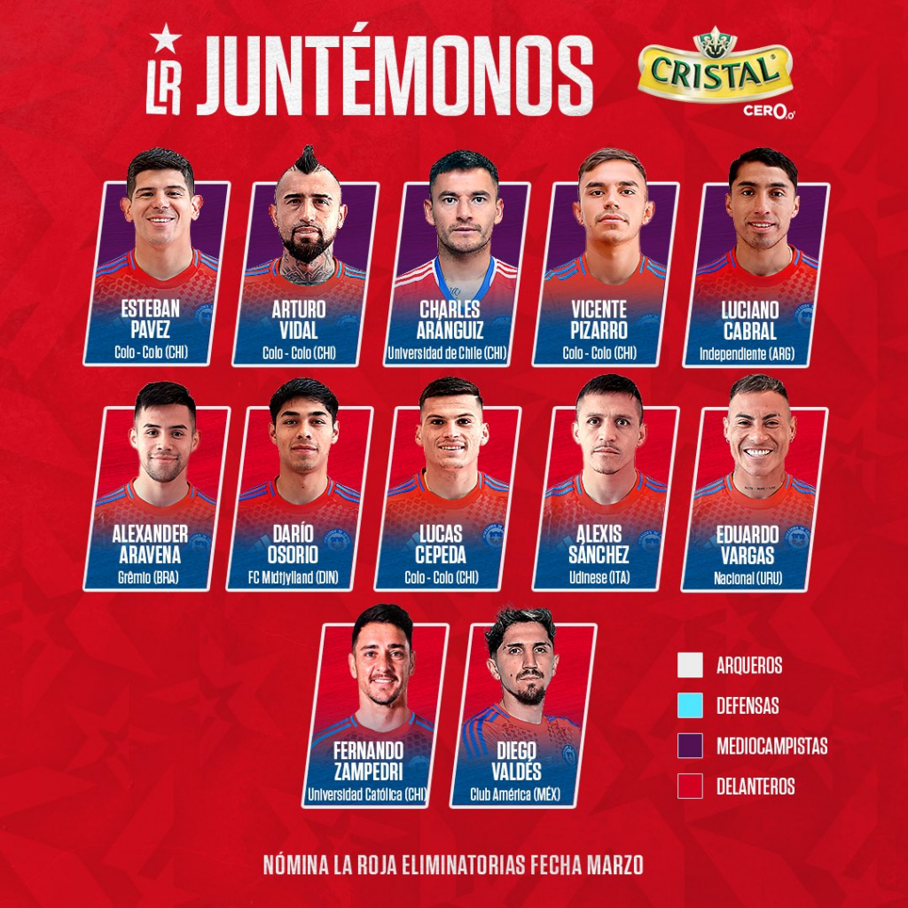A continuación, podrás encontrar la lista de convocados en la Selección Chilena para la doble fecha de Eliminatorias Sudamericanas: