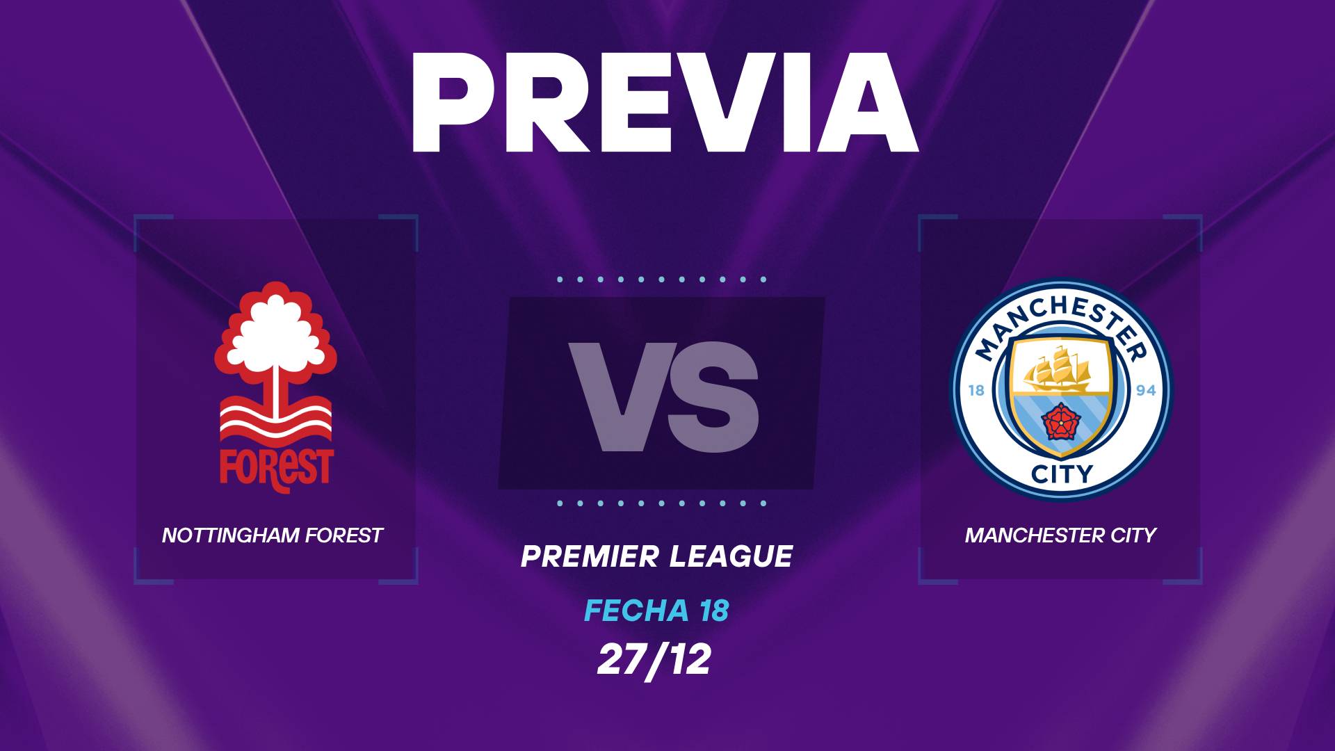 El City de Pep Guardiola va por el primer lugar de la tabla cuando este sábado visite a un Nottingham Forest que trata de escaparle al descenso directo esta temporada. Los citizens, con 37 puntos en 17 jornadas, son escoltas de Arsenal, mientras que el Forest apenas suma 18 unidades, con una pequeña luz de ventaja sobre el West Ham.
