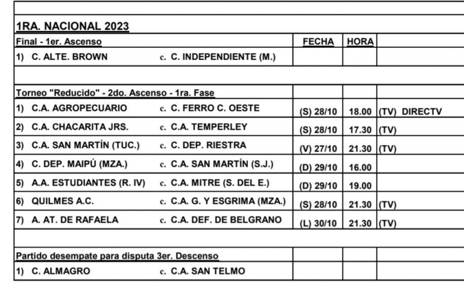El reducido se jugaría el 4 de noviembre en su primera instancia, el 11 los cuartos, el 18 las semis y el 25 la gran final por un lugar en la Liga Profesional. En tanto que la final por un pasaje a la “A” se disputaría el próximo 28 de octubre*