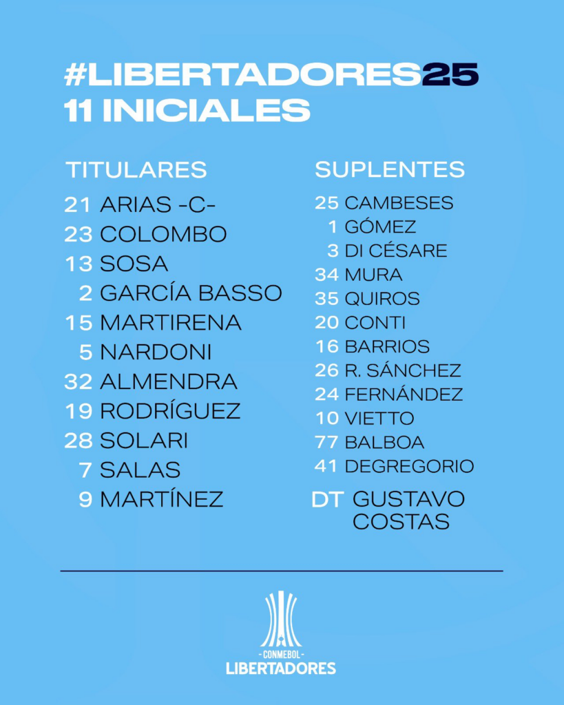 El equipo dirigido por Gustavo Costas ya tiene todo listo para salir a la cancha. Racing hoy presenta una formación ofensiva, con muchas variantes en el mediocampo y un tridente que promete dar pelea en territorio colombiano.
