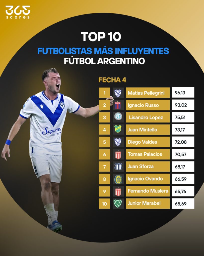 Fútbol argentino: ranking de jugadores más influyentes de la Fecha 4