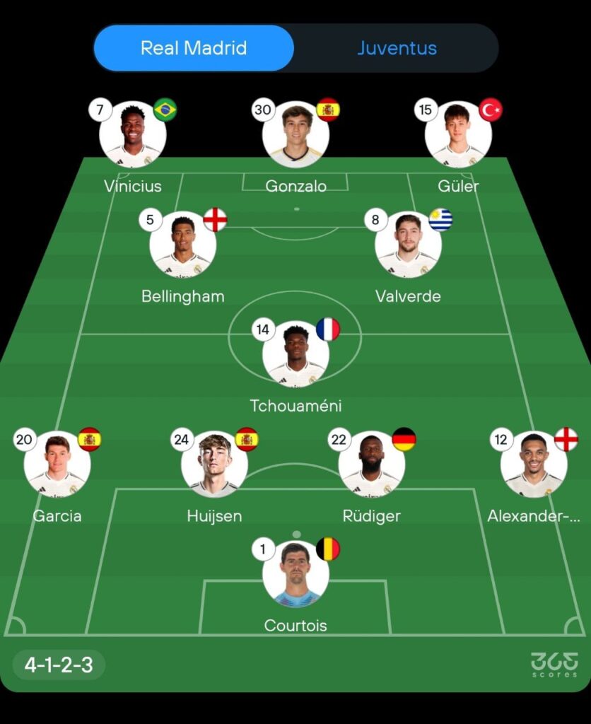 - Delanteros: Vinicius, Gonzalo García, Arda Güler.