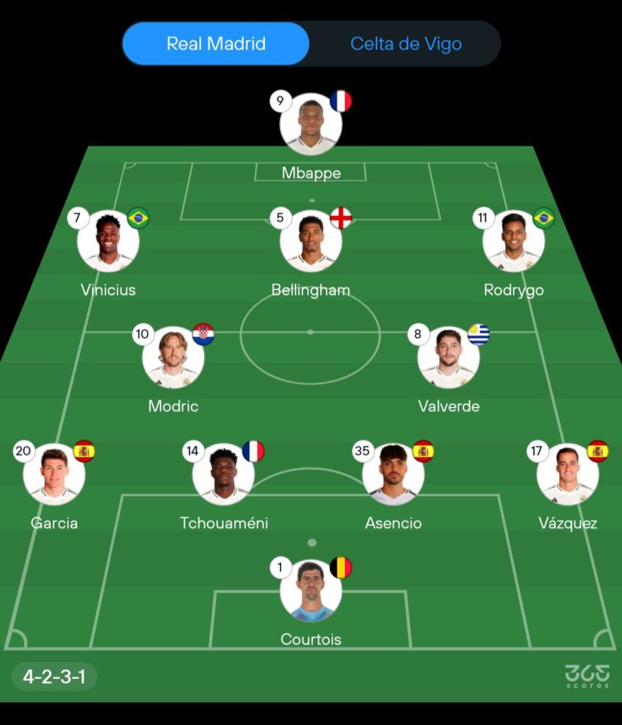 - Delanteros: Rodrygo, Kylian Mbappe, Vinicius