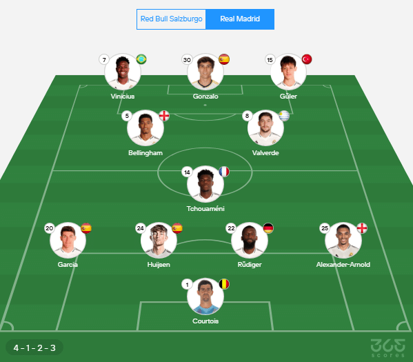 - Delanteros: Arda Güler, Gonzalo García, Vinicius.