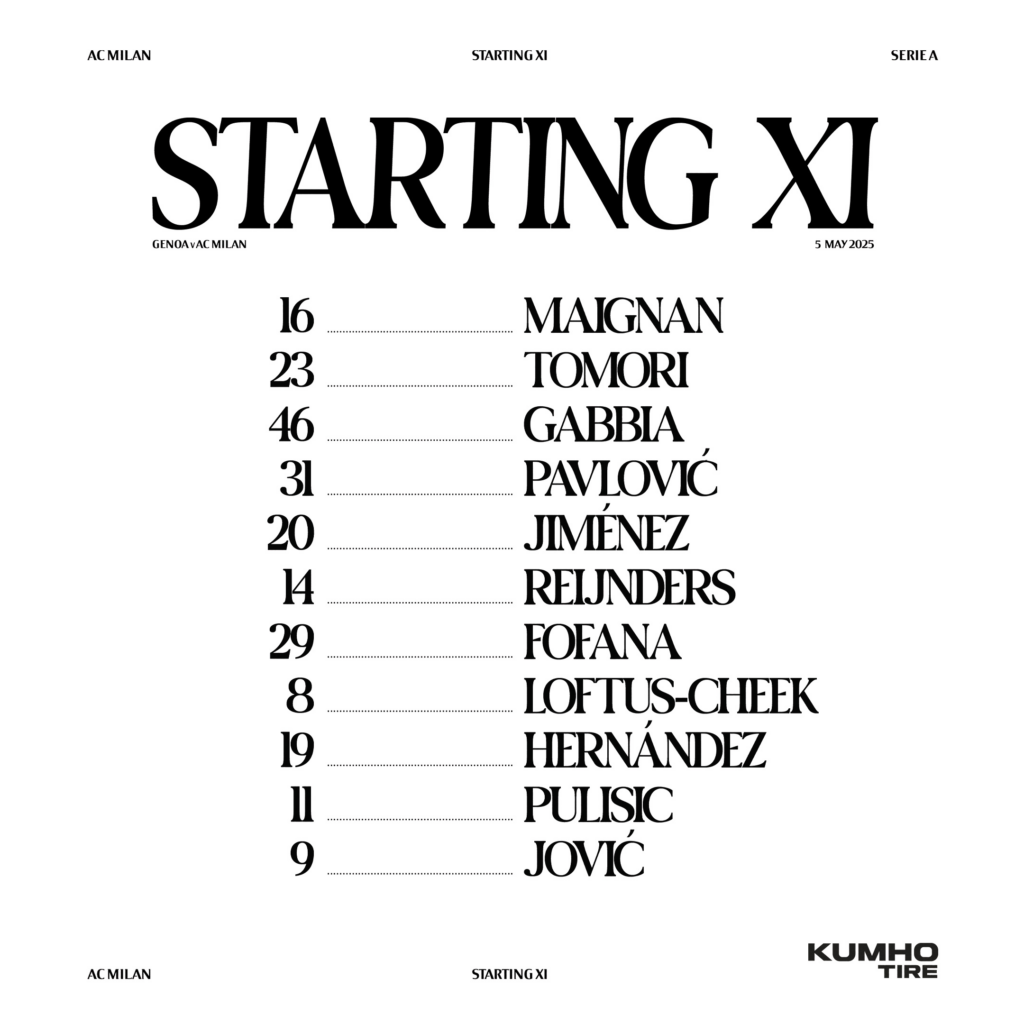 El AC Milan confirmó su alineación titular para enfrentar a Genoa por una nueva fecha de la Serie A, y una de las grandes sorpresas fue la ausencia de Santiago Giménez, quien estará en el banco de suplentes. El delantero mexicano no fue incluido entre los titulares por decisión técnica del entrenador Sérgio Conceição.