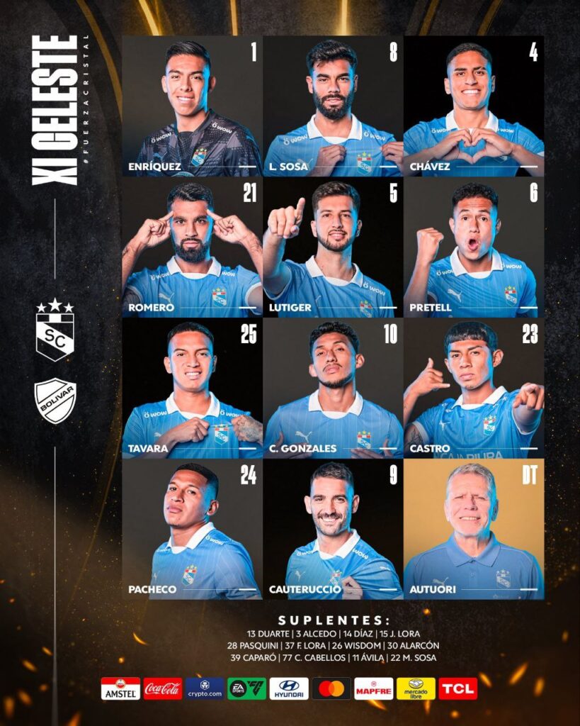 Alineación confirmada de Sporting Cristal hoy vs Bolivar