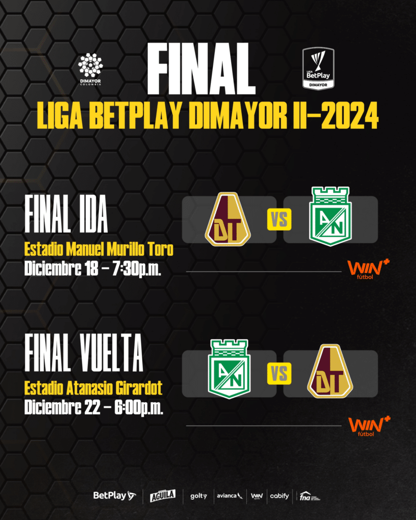 Final vuelta: Atlético Nacional vs. Deportes Tolima, el domingo 22 de diciembre a las 6:00 p.m. en el estadio Atanasio Girardot con señal de Win+.