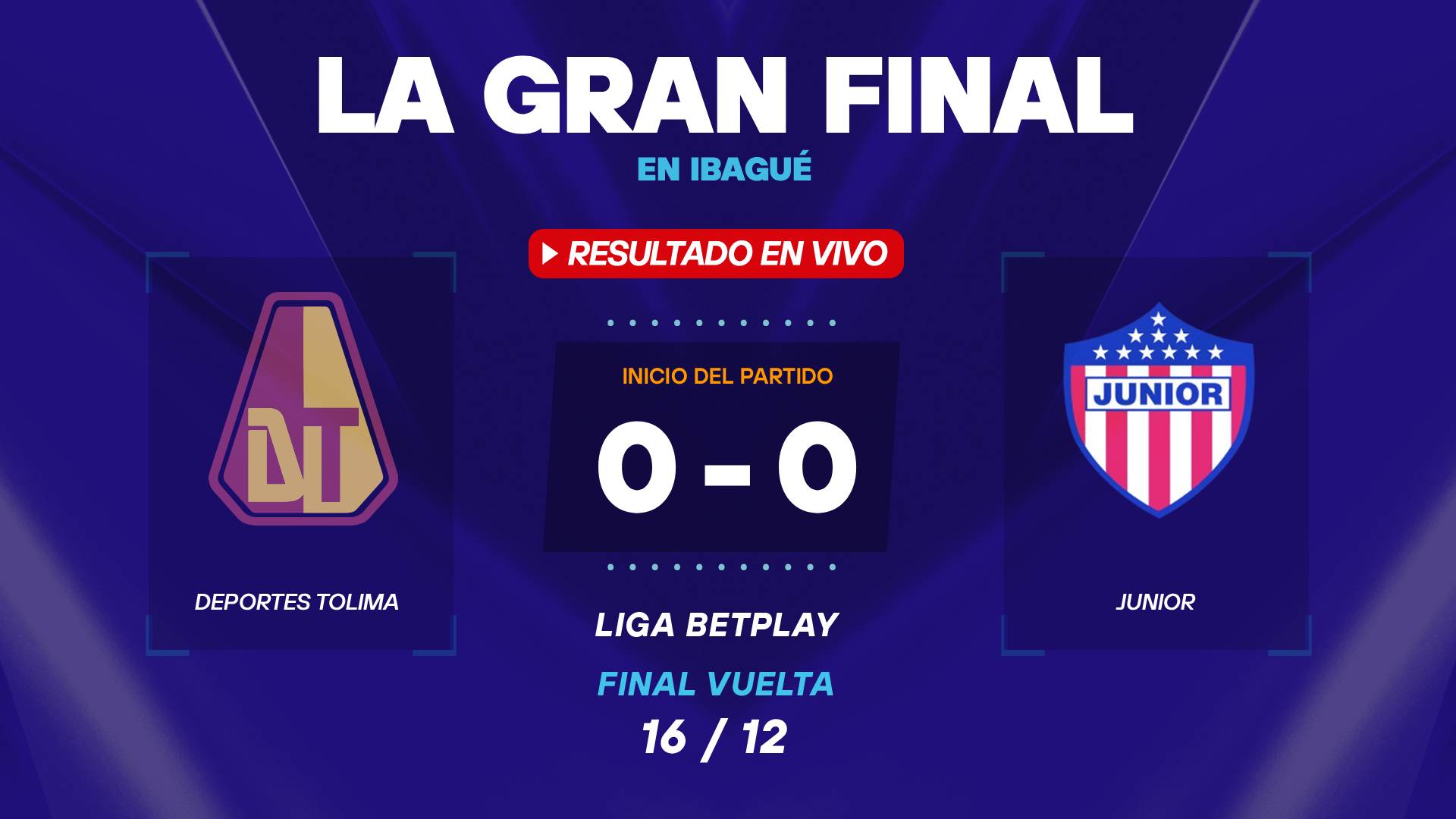Te ofrecemos la posibilidad de seguir en directo todas las incidencias de la gran final del campeonato colombiano con datos, estadísticas y goles desde el Murillo Toro donde Tolima buscará la épica y Junior redondear el trabajo hecho en casa.