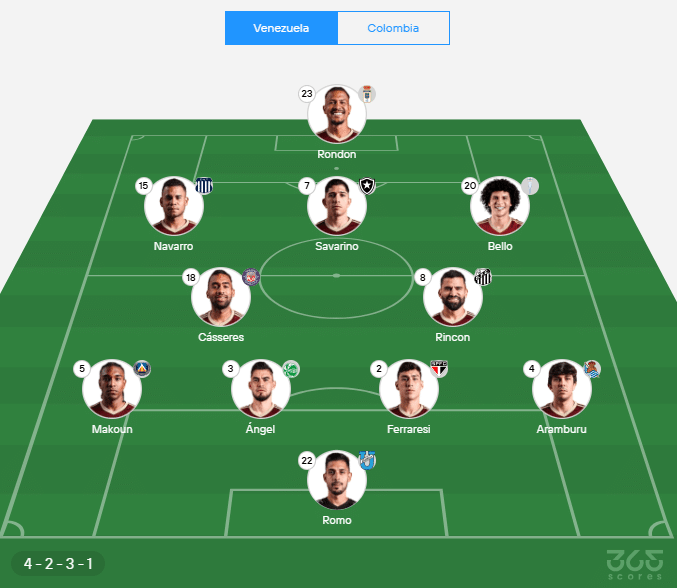 - Mediocampistas: Rincon, Savarino, Cásseres