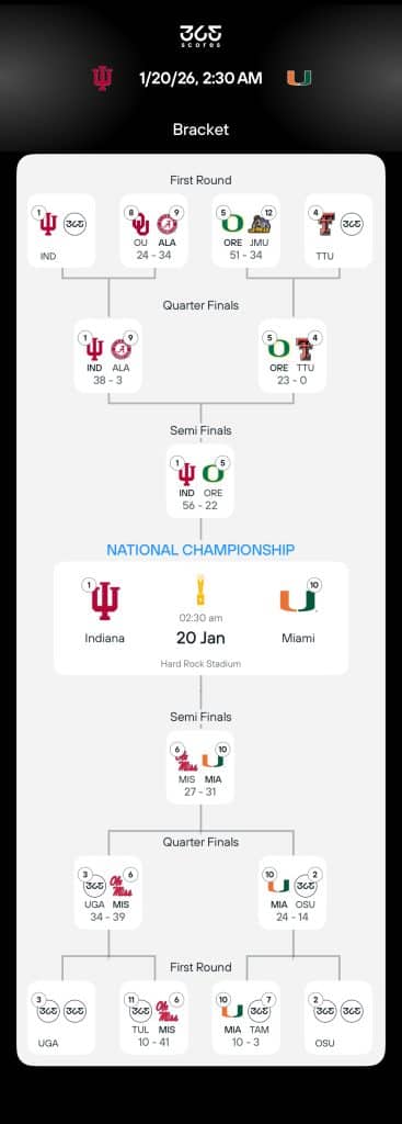 Under the lights at Hard Rock Stadium on Monday night, the 2026 College Football Playoff National Championship has a matchup nobody penciled in back in August: No. 1 Indiana vs No. 10 Miami, with a title on the line in Miami Gardens. Indiana arrives riding a postseason demolition job, flattening Alabama and Oregon by a combined 94 points and powered by Heisman winner Fernando Mendoza, playing with the swagger of a team that thinks destiny is real.