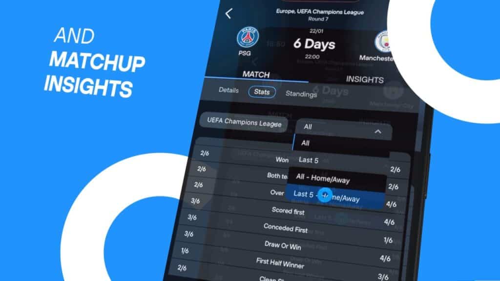 Navigating to the Stats tab before kickoff will provide an intuitive breakdown of historical data and key performance indicators that help you understand how the teams stack up. Here’s what you can explore: