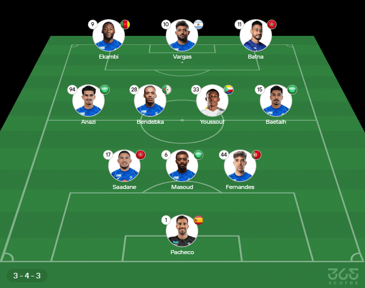 Escalação do Al-Fateh: Pacheco, Jorge Fernandes, Masoud e Saadane; Baetaih, Youssouf, Bendebka e Anazi; Batna, Toko Ekambi e Vargas. Técnico: José Manuel Gomes.