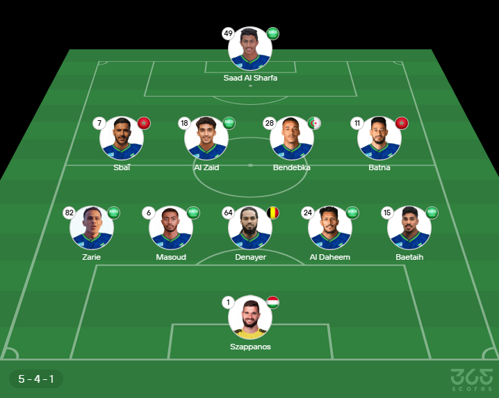- Provável escalação do Al Fateh: Szappanos, Zarie, Masoud, Denayer, Al Daheem e Baetaih; Sbai, Al Zaid, Bendebka e Batna; Saad Al Sharfa
