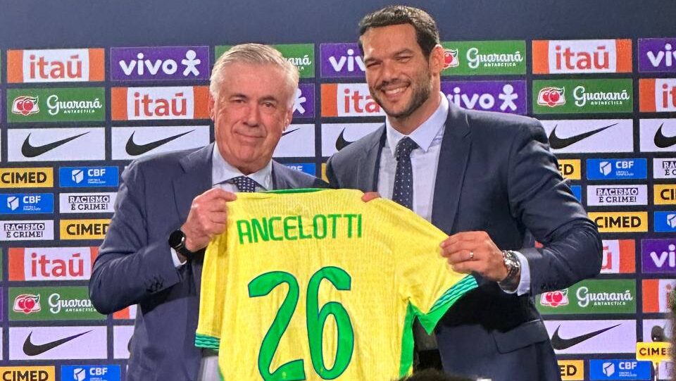“Muito bonito. Uma honra, orgulho comandar a melhor seleção do mundo. Tenho um grande trabalho para que o Brasil volte a ser campeão. Vamos juntos. Fui recebido com muito carinho. Agradecer o Real Madrid por ter deixado eu negociar com a CBF. Estou muito feliz, muito pronto. O desafio é muito grande, sempre tive conexão especial com esse país. A recepção que tive foi especial, tentarei transformar em um trabalho de nível máximo”, disse Carlo Ancelotti em suas primeiras palavras como técnico da Seleção.