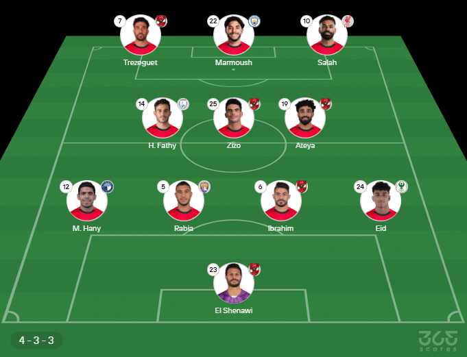 - Provável escalação do Egito: El Shenawi; Eid, Ibrahim, Rabia e Hany; Ateya, Zizo e Fathy; Salah, Marmoush e Trezeguet