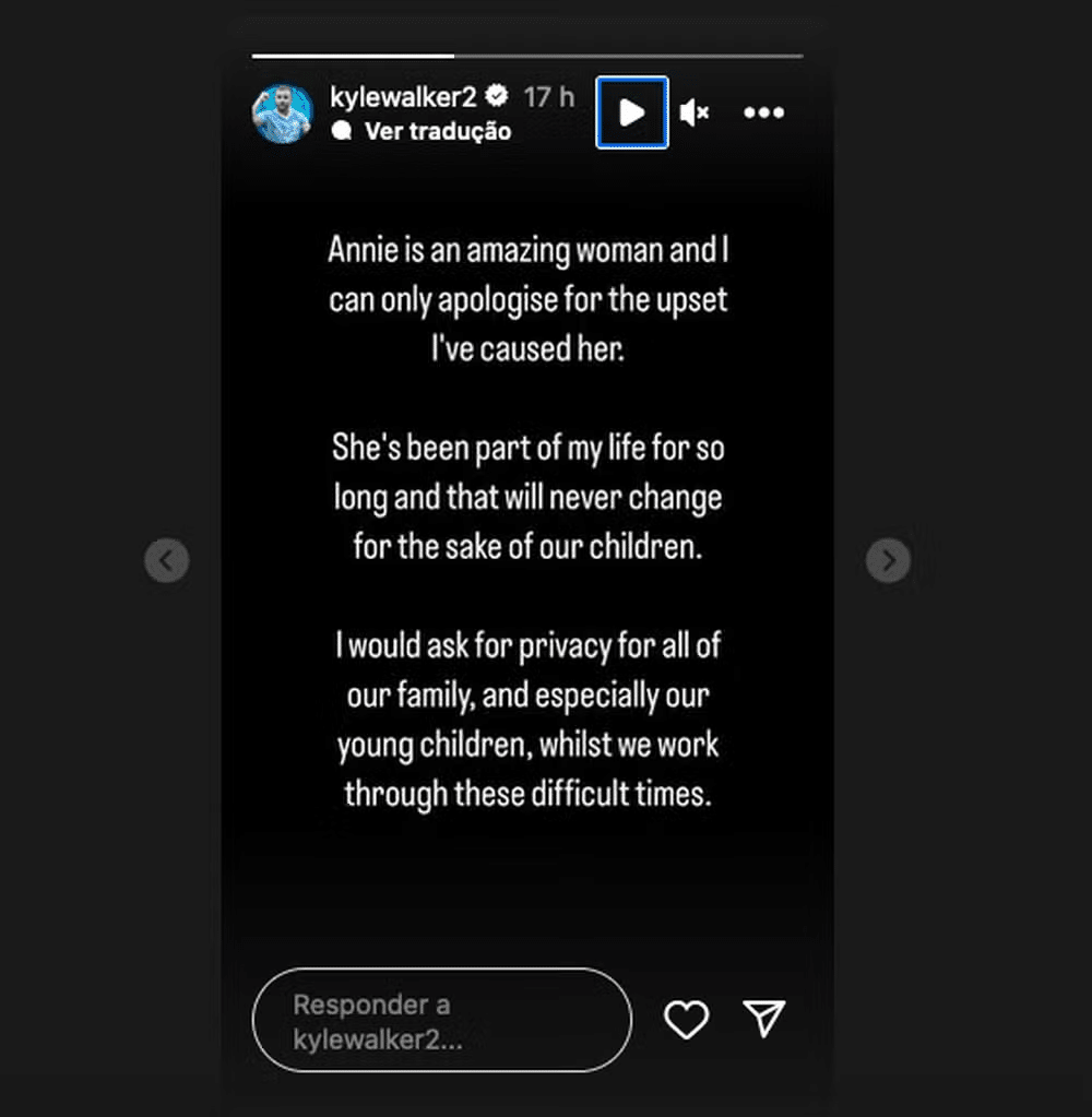“A Annie é uma mulher maravilhosa e só posso pedir desculpas por todo o sofrimento que causei a ela. Ela é parte da minha vida há muito tempo e isso não vai mudar, pelo bem de nossos filhos. Eu peço por privacidade, pela nossa família, principalmente por nossos filhos pequenos, enquanto encaramos esse momento difícil”, disse o jogador.