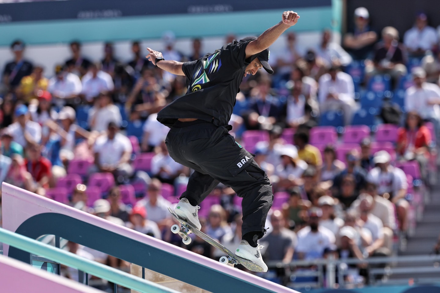 Agora, o skate street se despede de Paris, e inicia a competição do skate park, e o Brasil será representado por Dora Varella, Raicca Ventura e Isadora Ventura no feminino, e Augusto Akio, Luigi Cini e Pedro Barros, no masculino.