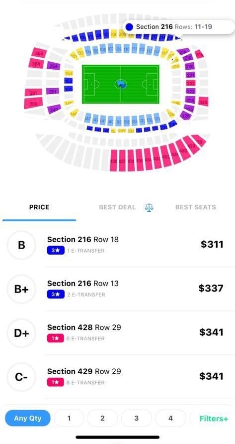 Em algumas plataformas, os tickets para a partida passaram a ser comercializados por valores acima dos 400 dólares (cerca de R$ 1.969), preço das entradas para a final da NBA. Por sua vez, os ingressos para o jogo contra o Los Angeles FC, atual campeão da MLS, em setembro, estão sendo vendidos por mais de 450 dólares (cerca de R$ 2.215).