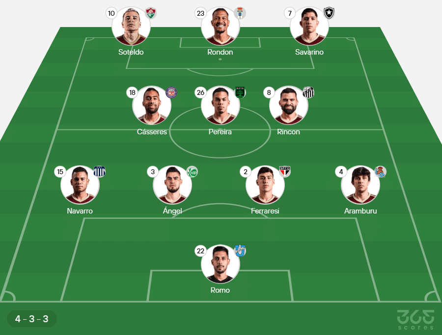 Provável escalação da Venezuela: Romo; Aramburu, Ferraresi, Ángel e Navarro; Rincón, Daniel Pereira e Cásseres; Savarino, Soteldo e Rondon.