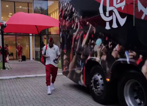 Em imagens divulgadas pelo Flamengo, o chileno pôde ser visto entrando no ônibus do clube com um cabelo pintado em vermelho e preto. O moicano, que é sua marca registrada, foi mantido.