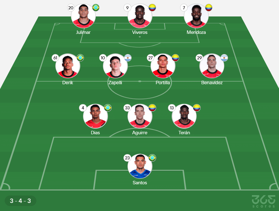 Athletico-PR: Santos; Carlos Terán, Aguirre e Arthur Dias; Gastón Benavídez, Juan Portilla, Bruno Zapelli e Lucas e Léo Derik; Mendoza, Julimar e Kevin Viveros.