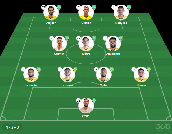 - Provável escalação do Mirassol: Walter; Ramon, Victor, Jemmes, Reinaldo; Danielzinho, Moura, Shaylon; Negueba, Alesson, Cristian