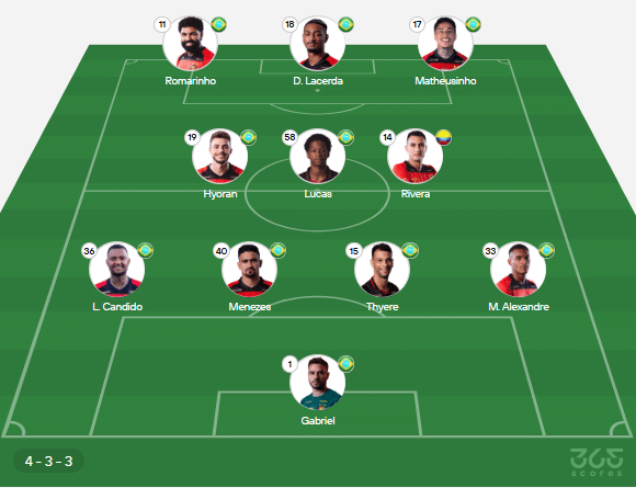 - Provável escalação do Sport: Gabriel, Matheus Alexandre, Rafael Thyere, Ramon Menezes, Luan Cândido; Zé Lucas, Rivera, Hyoran; Matheusinho, Romarinho, Derik Lacerda