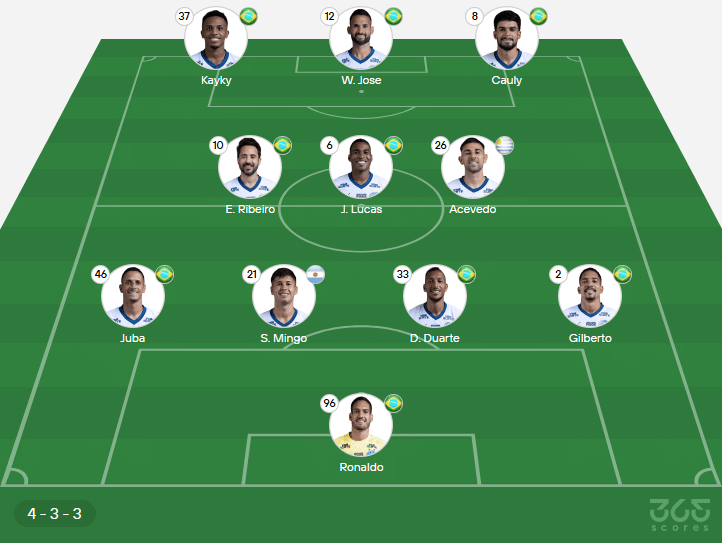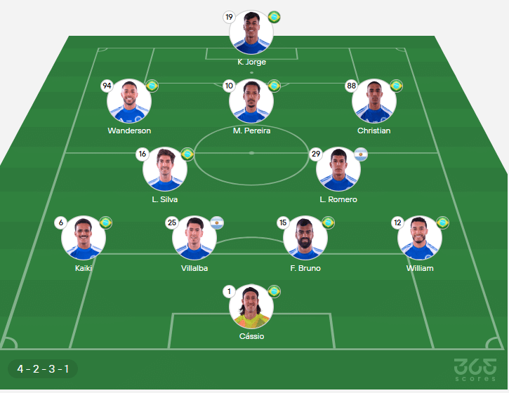 - Provável escalação do Cruzeiro: Cássio, William, Fabrício Bruno, Villalba, Kaiki Bruno; Romero, Lucas Silva, Christian, Wanderson, Matheus Pereira; Kaio Jorge