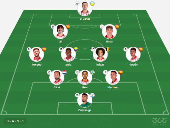 - Provável escalação do Girona: Gazzaniga, Martínez, Vitor Reis, Blind; Rincón, Wirsel, Solis, Moreno, Roca, Gil; Vanat