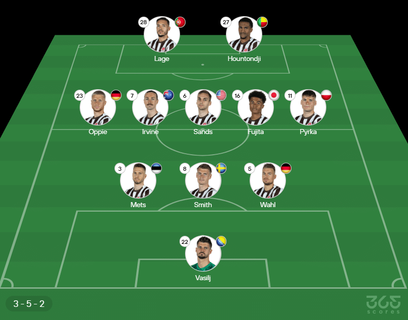 Provável escalação do St. Pauli: Vasilj; Wahl, Smith e Mets; Pyrka, Fujita, Sands, Irvine e Oppie; Hountondji e Lage. Técnico: Alexander Blessin.
