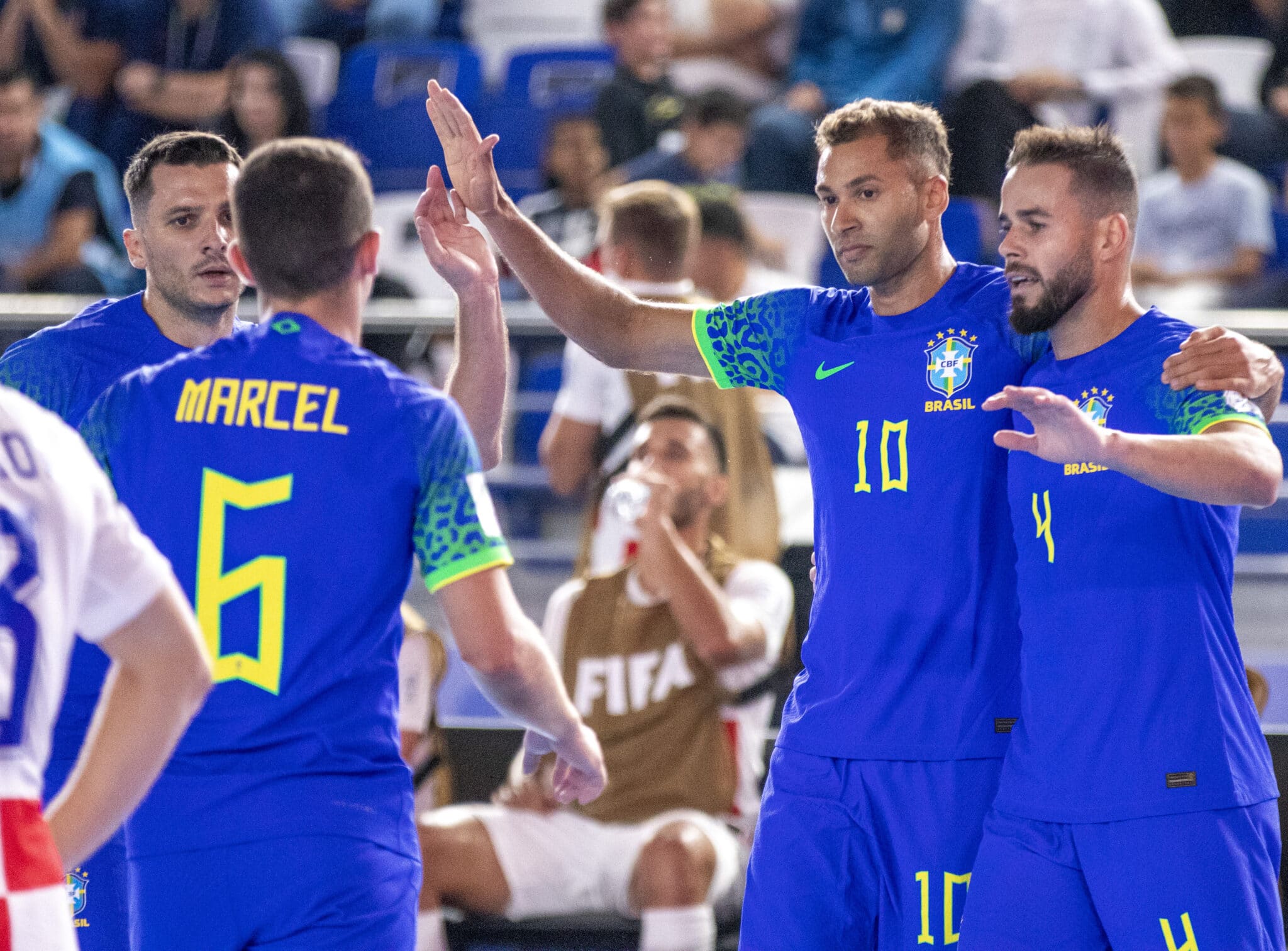 Depois de estrear com um 10 contra Cuba, o Brasil conseguiu mais uma goleada, desta vez por 8 a 1 contra a Croácia, e garantiu a classificação antecipada para as oitavas de final da Copa do Mundo de Futsal.