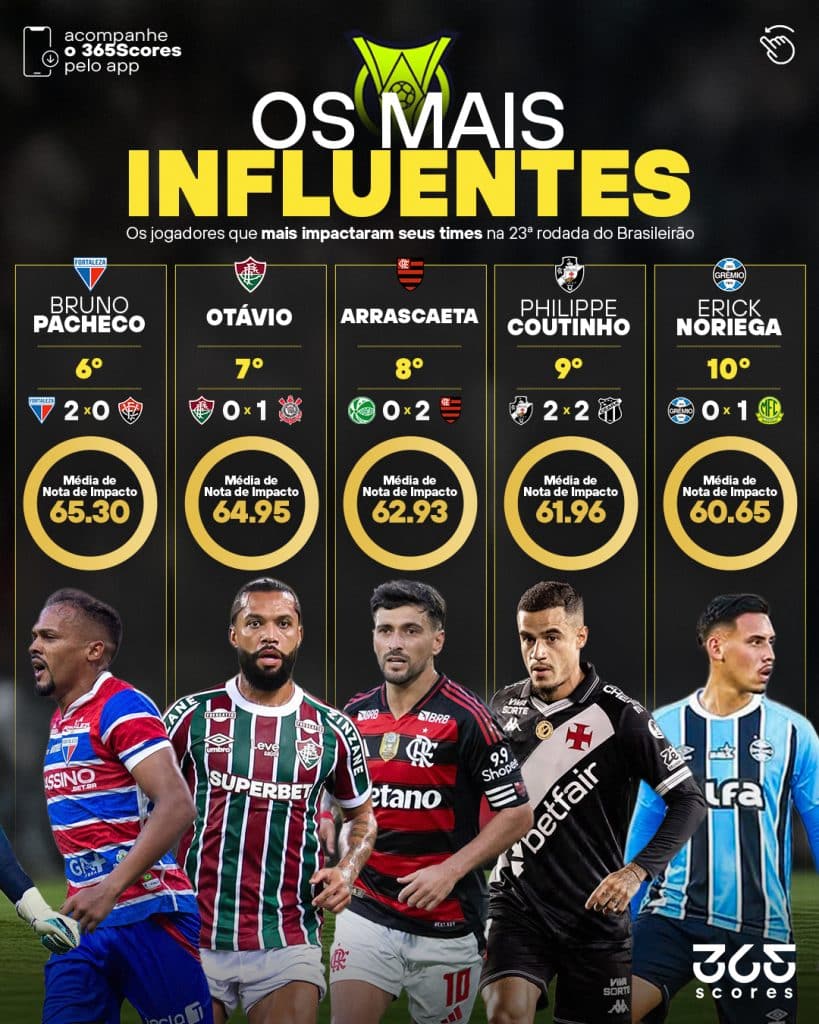 Brasileirão: veja os 10 jogadores mais impactantes da 23ª rodada